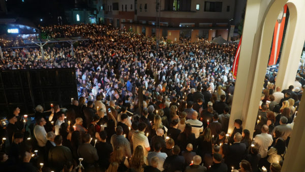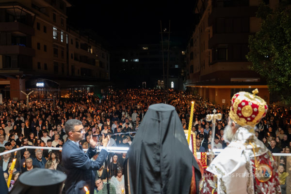 Η συγκίνηση κορυφώθηκε στις 12 τα μεσάνυχτα, όταν ο Αρχιεπίσκοπος ανήγγειλε το χαρμόσυνο μήνυμα του θριάμβου της ζωής επί του θανάτου, και συγχρόνως οι αμέτρητες φλόγες από τις λαμπάδες των πιστών σχημάτισαν ένα φωτεινό πέπλο που κάλυψε το σκοτάδι της νυκτός.