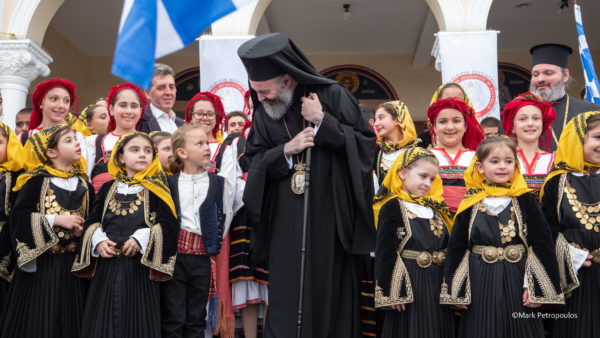 Μετά από την Απόλυση της Θείας Λειτουργίας, στον σημαιοστολισμένο αύλειο χώρο της εκκλησίας εκτυλίχθηκε το πλούσιο πολιτιστικό πρόγραμμα της εκδήλωσης, το οποίο περιελάμβανε απαγγελίες ποιημάτων, εμπνευσμένων από τον Αγώνα του ’21 και την Εθνική Παλιγγενεσία, καθώς επίσης παρουσίαση επετειακών τραγουδιών και παραδοσιακών ελληνικών χορών. Σε φόντο γαλάζιο και λευκό, με διάχυτα αισθήματα ενθουσιασμού και υπερηφάνειας, τα παιδιά και οι νέοι της Ομογένειας απέδειξαν πως γνωρίζουν και τιμούν τους αγώνες των προγόνων τους, την ιστορία, τις αξίες και τις παραδόσεις του Γένους τους.