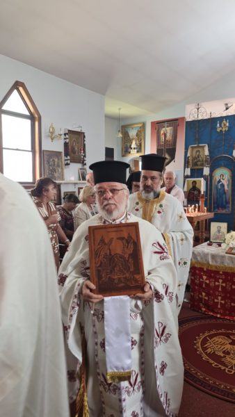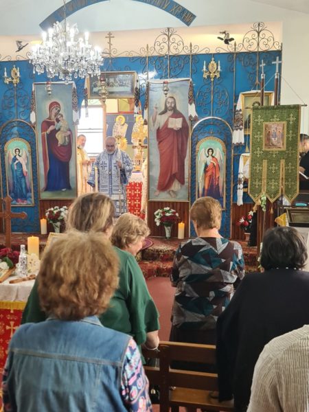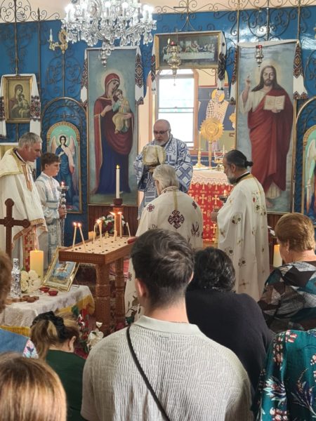 Η Πανηγυρική Θεία Λειτουργία τελέστηκε στην ελληνική, την αγγλική και την ουκρανική γλώσσα, αναδεικνύοντας τόσο την πλούσια κληρονομιά, όσο και το συμπεριληπτικό πνεύμα της Ενορίας. Προεξήρχε ο Θεοφιλέστατος Επίσκοπος Μιλητουπόλεως κ. Ιάκωβος, Ηγούμενος της Ιεράς Μονής Αγίου Γεωργίου Yellow Rock, ο οποίος εκπροσώπησε τον Σεβασμιώτατο Αρχιεπίσκοπο Αυστραλίας κ. Μακάριο.