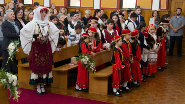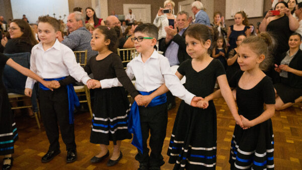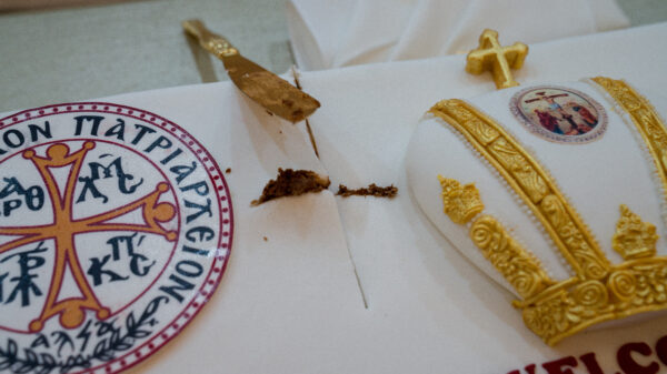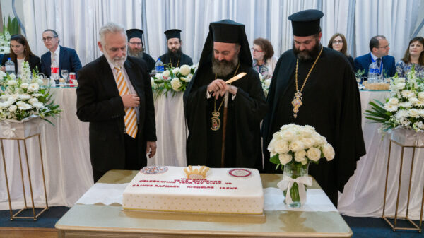 Μετά το πέρας της Θείας Λειτουργίας, σύσσωμοι οι πιστοί και οι επίσημοι μετέβησαν στο χωλ της Ενορίας, όπου έλαβε χώρα εορταστική εκδήλωση. Τα παιδιά του κατηχητικού σχολείου υποδέχτηκαν τον Αρχιεπίσκοπο με ποιήματα και με τραγούδια, ενώ τα χορευτικά συγκροτήματα της Ενορίας – Κοινότητας και του Λυκείου Ελληνίδων προσέφεραν όμορφο θέαμα στους παρευρισκόμενους, παρουσιάζοντας παραδοσιακούς ελληνικούς χορούς. Μαζί με τον κ. Ρεκουνιώτη και τον πατέρα Πρόχορο, ο Σεβασμιώτατος έκοψε την τούρτα που ήταν αφιερωμένη στην πρώτη του επίσημη επίσκεψη στην Ενορία των Αγίων Ραφαήλ, Νικολάου και Ειρήνης, ενώ στον σύντομο χαιρετισμό που απηύθυνε, παρακάλεσε τους ενορίτες να μείνουν κοντά στον Χριστό και να τον αγαπούν με όλη τους την καρδιά. Όπως χαρακτηριστικά υπογράμμισε, «ο Χριστός είναι το πρόσωπο που μας ενώνει».