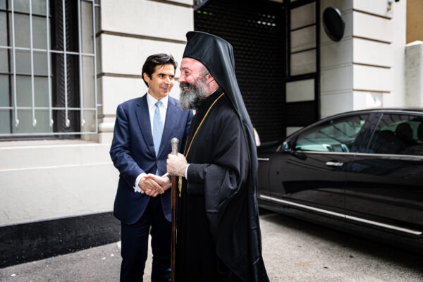 11/02/2020 11/02/2020 Ο Σεβασμιώτατος Αρχιεπίσκοπος Αυστραλίας κ. Μακάριος, συνοδευόμενος από τον Πρωτοσύγκελο της Ιεράς Αρχιεπισκοπής, Θεοφιλέστατο Επίσκοπο Μελόης κ. Αιμιλιανό, πραγματοποίησε την Τρίτη, 11 Φεβρουαρίου, την πρώτη επίσημη επίσκεψή του στο Γενικό Προξενείο της Ελλάδας στο Σίδνεϋ.