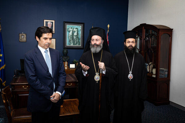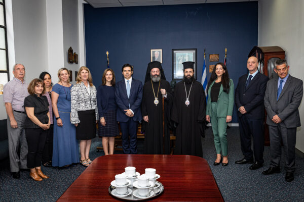 Ο Σεβασμιώτατος Αρχιεπίσκοπος Αυστραλίας κ. Μακάριος, συνοδευόμενος από τον Πρωτοσύγκελο της Ιεράς Αρχιεπισκοπής, Θεοφιλέστατο Επίσκοπο Μελόης κ. Αιμιλιανό, πραγματοποίησε την Τρίτη, 11 Φεβρουαρίου, την πρώτη επίσημη επίσκεψή του στο Γενικό Προξενείο της Ελλάδας στο Σίδνεϋ.