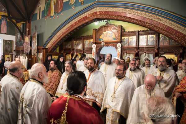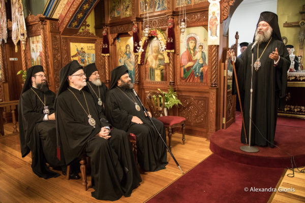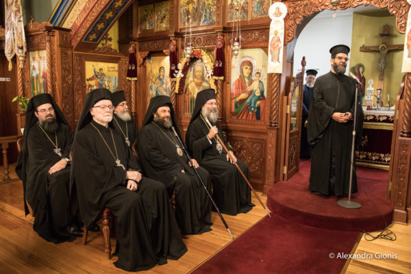 Στον Πανηγυρικό Εσπερινό παρέστησαν συμπροσευχόμενοι οι Σεβασμιώτατοι Μητροπολίτες Δέρβης κ. Ιεζεκιήλ, Νέας Ζηλανδίας κ. Μύρων και Ρεθύμνης και Αυλοποτάμου κ. Πρόδρομος, ο οποίος κήρυξε τον Θείο Λόγο κατόπιν παρακλήσεως του Αρχιεπισκόπου, καθώς επίσης οι Θεοφιλέστατοι Επίσκοποι Μελβούρνης κ. Κυριακός και Χώρας κ. Ευμένιος, και οι συνοδεύοντες τον Μητροπολίτη Ρεθύμνης, ΠανοσιολογιώτατοιΑρχιμανδρίτες κ. Βασίλειος Παπαδάκης, Ηγούμενος της Ιεράς Μονής Αγίας Αναστασίας της Ρωμαίας Ρεθύμνης, και κ. ΘεολόγοςΠαπαλεβυζάκης, Ηγουμενοσύμβουλος της Ιεράς Πατριαρχικής και Σταυροπηγιακής Μονής Αρκαδίου. Επίσης, μεταξύ των πιστών που κατέκλυσαν την εκκλησία, ήταν ο κ. Ιωάννης Χρυσουλάκης, πρώην Γενικός Γραμματέας Απόδημου Ελληνισμού και Δημόσιας Διπλωματίας του Υπουργείου Εξωτερικών της Ελλάδος.