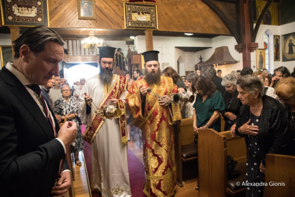Στην Ακολουθία χοροστάτησε ο Σεβασμιώτατος Αρχιεπίσκοπος Αυστραλίας κ. Μακάριος, η παρουσία του οποίου σηματοδότησε ένα ιστορικό ορόσημο για την ελληνορθόδοξη εκκλησία του Αγίου Ελευθερίου: Για πρώτη φορά μετά την ίδρυσή της, το έτος 1968, πέρασε το κατώφλι της Προκαθήμενος της τοπικής Εκκλησίας.