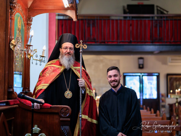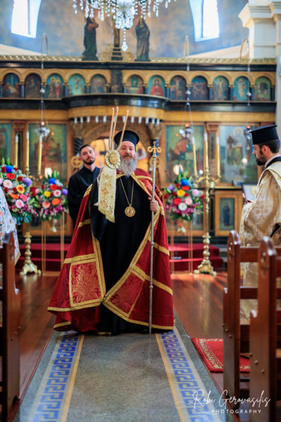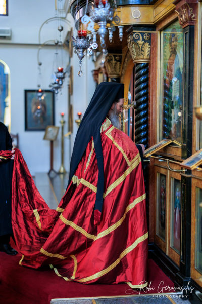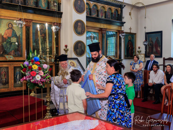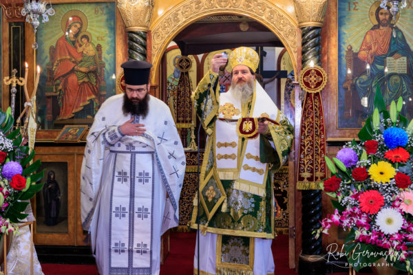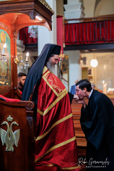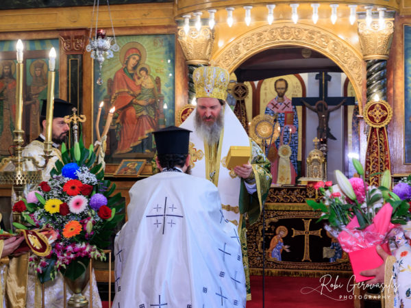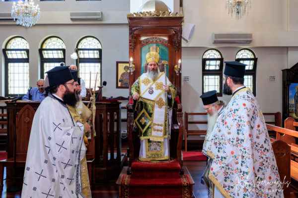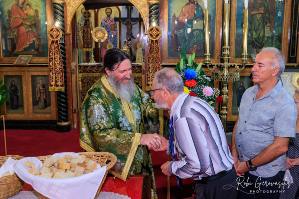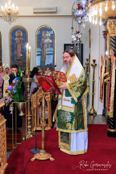 Στο τέλος της Θείας Λειτουργίας, ο Θεοφιλέστατος υποδέχθηκε επίσημα τον π. Λεωνίδα Ιωάννου που επισκεπτόταν οικογενειακώς την Πέρθη, από την Ιερά Επισκοπή Χώρας.
