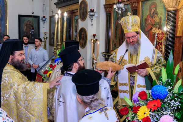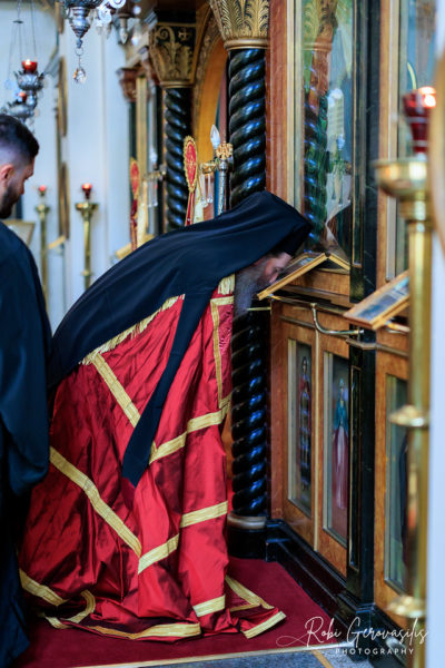 Επίσης, ευλόγησε τους παρευρισκόμενους πιστούς με τα ιερά λείψανα, τα οποία στο τέλος της Θείας Λειτουργίας τέθηκαν σε προσκύνηση.