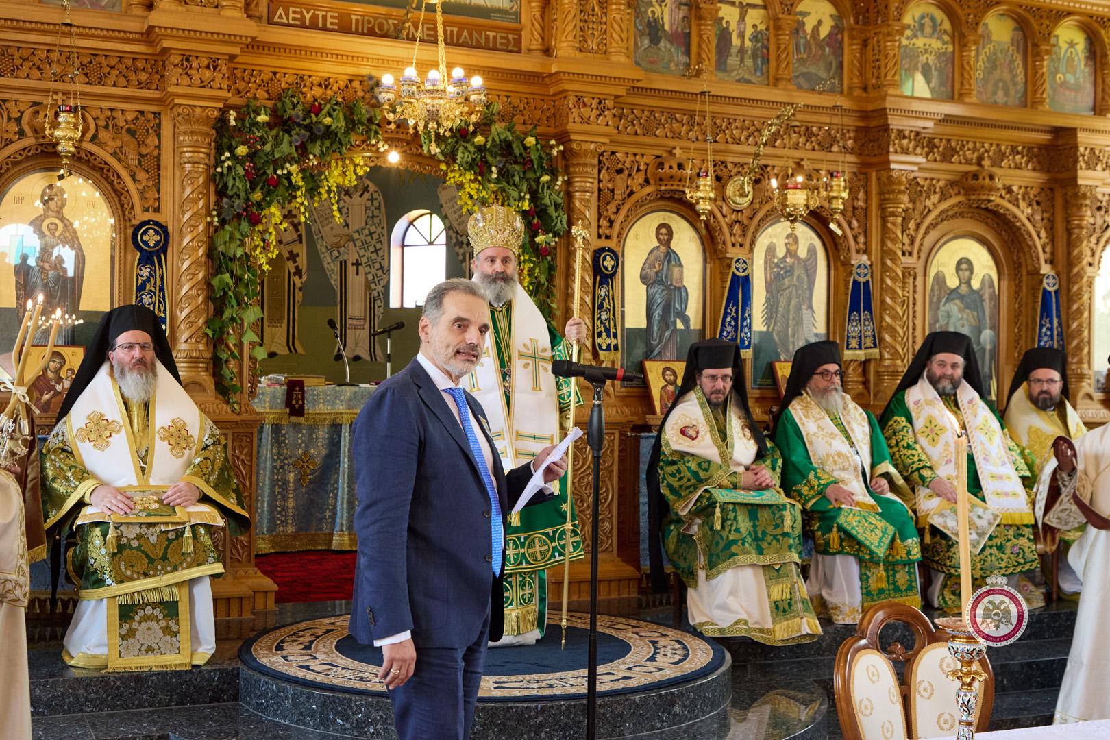 Ο Σεβασμιώτατος κ.κ. Μακάριος, ο οποίος προεξήρχε της πανηγυρικής Συνοδικής Θείας Λειτουργίας και της τελετής ενθρονίσεως, επαναβεβαίωσε την απόλυτη εμπιστοσύνη της τοπικής Εκκλησίας προς το πρόσωπό τουΕπισκόπου Καμπέρας, κάνοντας λόγο για έναν χαρισματικό εκκλησιαστικό άνδρα, με σπάνια τάλαντα και βαθύτατη καλλιέργεια, αλλά κυρίως κεκοσμημένομε τούς καρπούς του Πνεύματος, δηλαδή «της αγάπης, της χαράς, της ειρήνης, της μακροθυμίας, της χρηστότητος, της αγαθωσύνης, της πίστεως, της πραότητοςκαι της εγκρατείας» (πρβλ. Γαλ. ε’, 22-23).