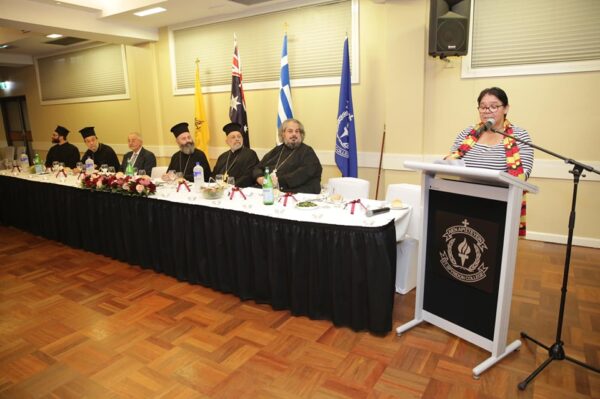 Η αίθουσα της ενορίας για το επίσημο δείπνο ήταν καλεσμένοι και ο Μητροπολίτης Στέφανος του Ταλίν και πάσης Εσθονίας που εκπροσωπεί την Α.Θ.Π. τον Οικουμενικό Πατριάρχη Βαρθολομαίο, ο Μητροπολίτης Σιγκαπούρης κ. Κωνσταντίνος, ο Μητροπολίτης Μαρωνείας και Κομοτηνής κ. Παντελεήμων, ο Μητροπολίτης Νέας Ζηλανδίας κ. Μύρων της Νέας Ζηλανδίας καθώς και ο Επίσκοπος Απολλωνιάδος κ. Σεραφείμ.
