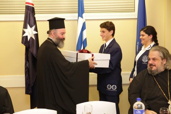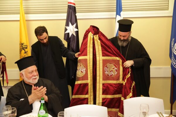 Η αίθουσα της ενορίας για το επίσημο δείπνο ήταν καλεσμένοι και ο Μητροπολίτης Στέφανος του Ταλίν και πάσης Εσθονίας που εκπροσωπεί την Α.Θ.Π. τον Οικουμενικό Πατριάρχη Βαρθολομαίο, ο Μητροπολίτης Σιγκαπούρης κ. Κωνσταντίνος, ο Μητροπολίτης Μαρωνείας και Κομοτηνής κ. Παντελεήμων, ο Μητροπολίτης Νέας Ζηλανδίας κ. Μύρων της Νέας Ζηλανδίας καθώς και ο Επίσκοπος Απολλωνιάδος κ. Σεραφείμ.