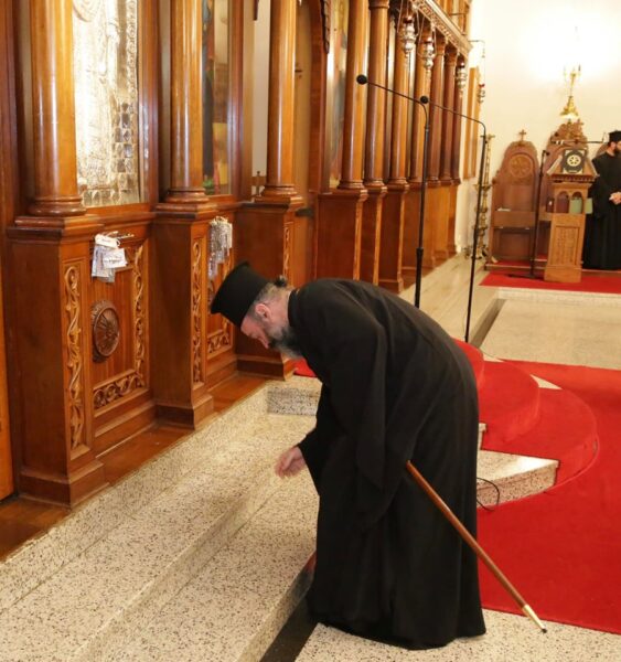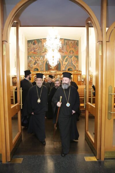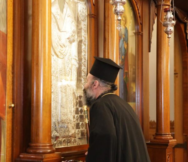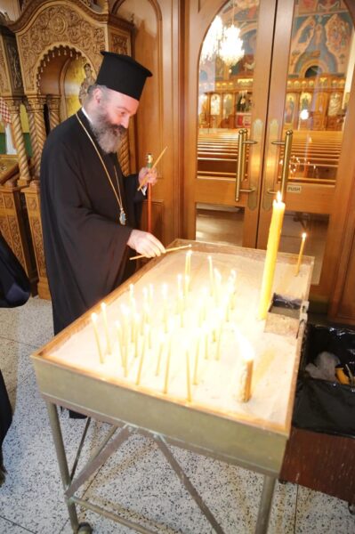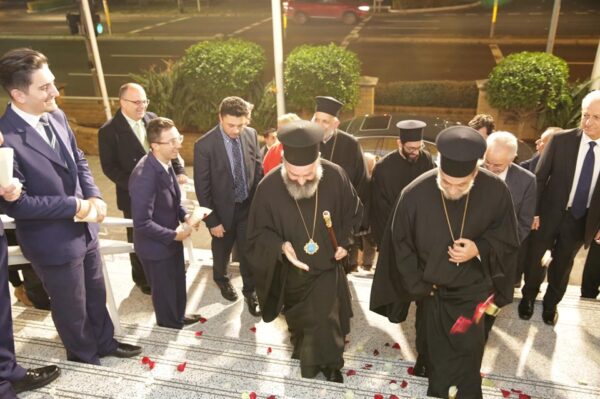 Τον Σεβασμιώτατο υποδέχθηκε ο Θεοφιλέστατος Επίσκοπος Απολλωνιάδος κ. Σεραφείμ, ο π. Στέφανος Σκουτάς, ο π. Αμφιλόχιος Παπαντωνίου και ο Πρόεδρος της Ενορίας Dr Θωμάς Σαβούλης.