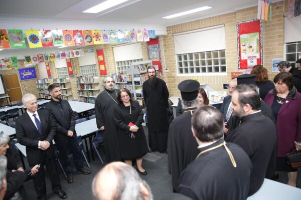 Ακολούθως επισκέφτηκε το Δημοτικό Σχολείο του Αγίου Σπυρίδωνα όπου τον καλωσόρισε η διευθύντρια κ. Ευφροσύνη Στεφάνου και οι καθηγητές του ελληνικού προγράμματος. Ο Σεβασμιώτατος ξεναγήθηκε στο εργαστήριο Πληροφορικής και τη Βιβλιοθήκη και υποσχέθηκε να πραγματοποιήσει μια επίσκεψη και στις δύο πανεπιστημιουπόλεις με την πρώτη ευκαιρία μετά τις σχολικές διακοπές.