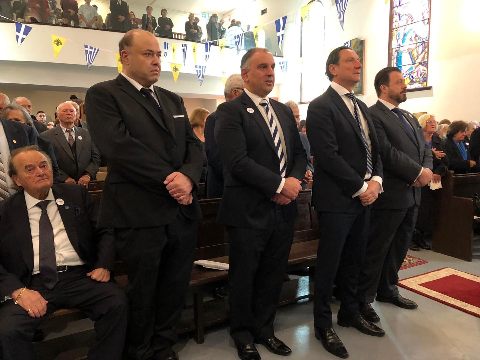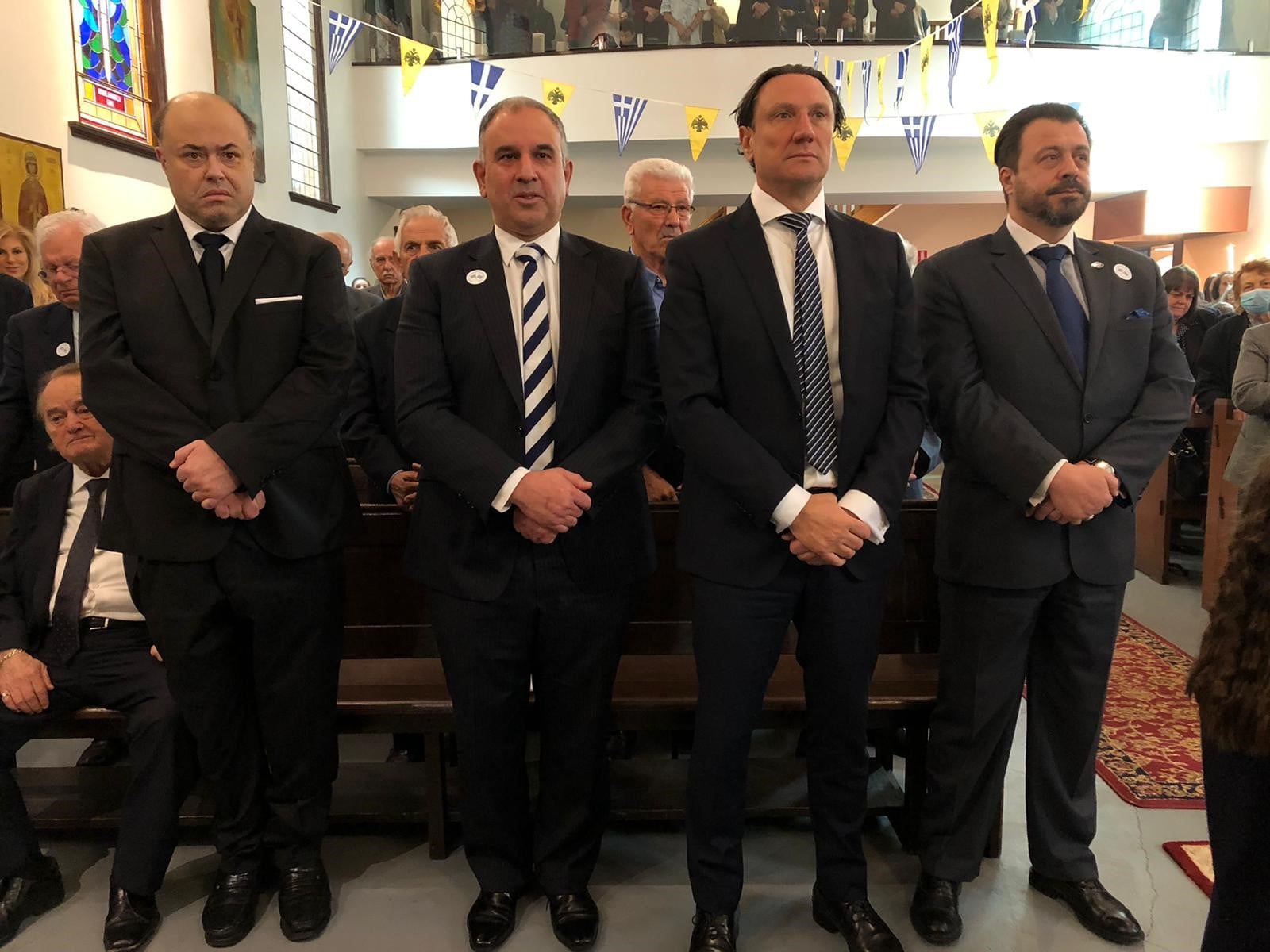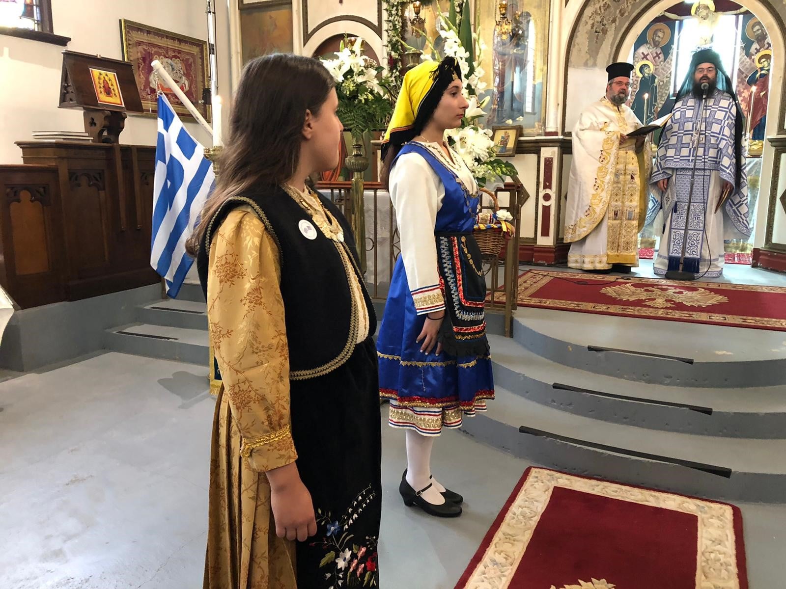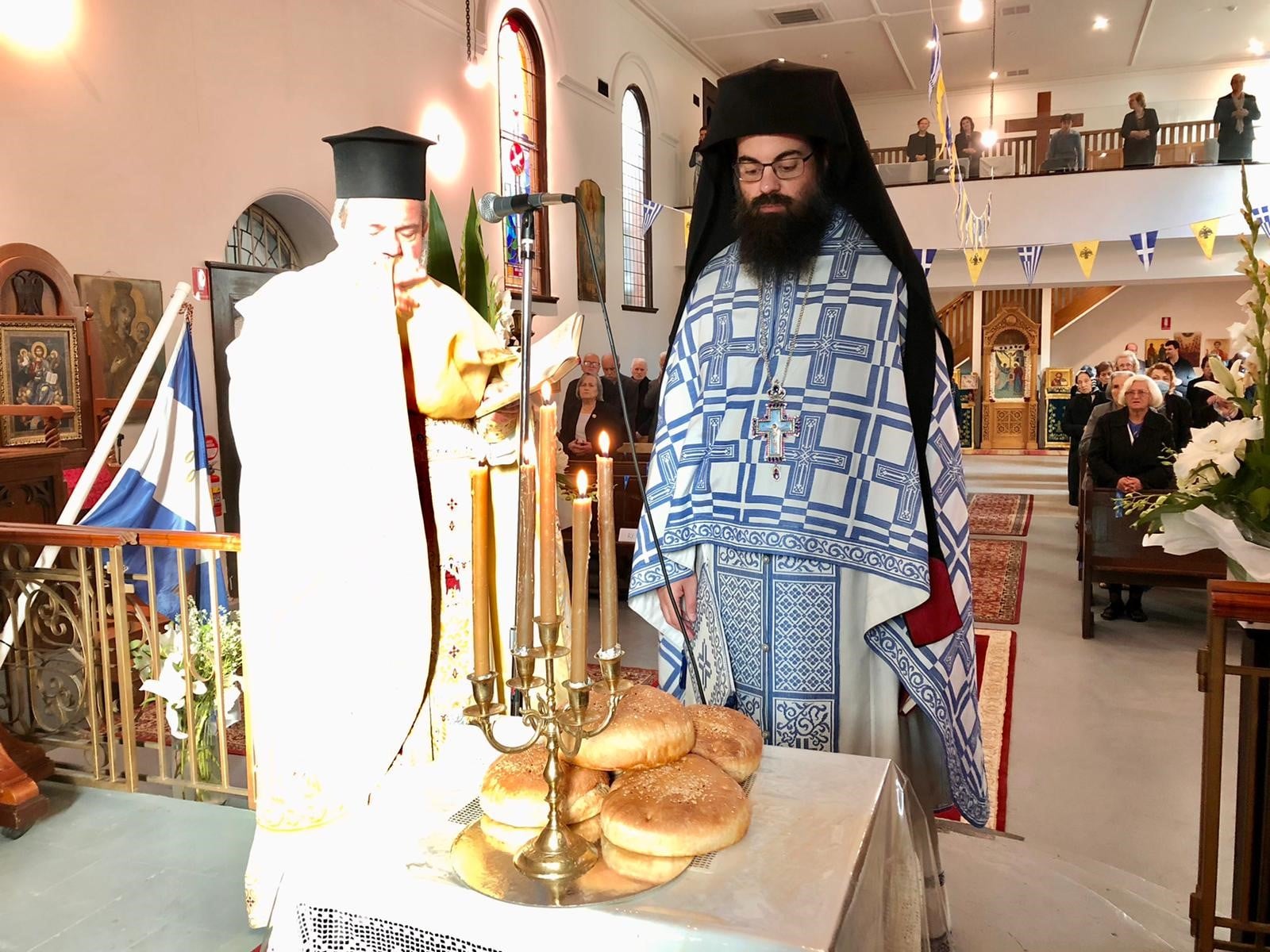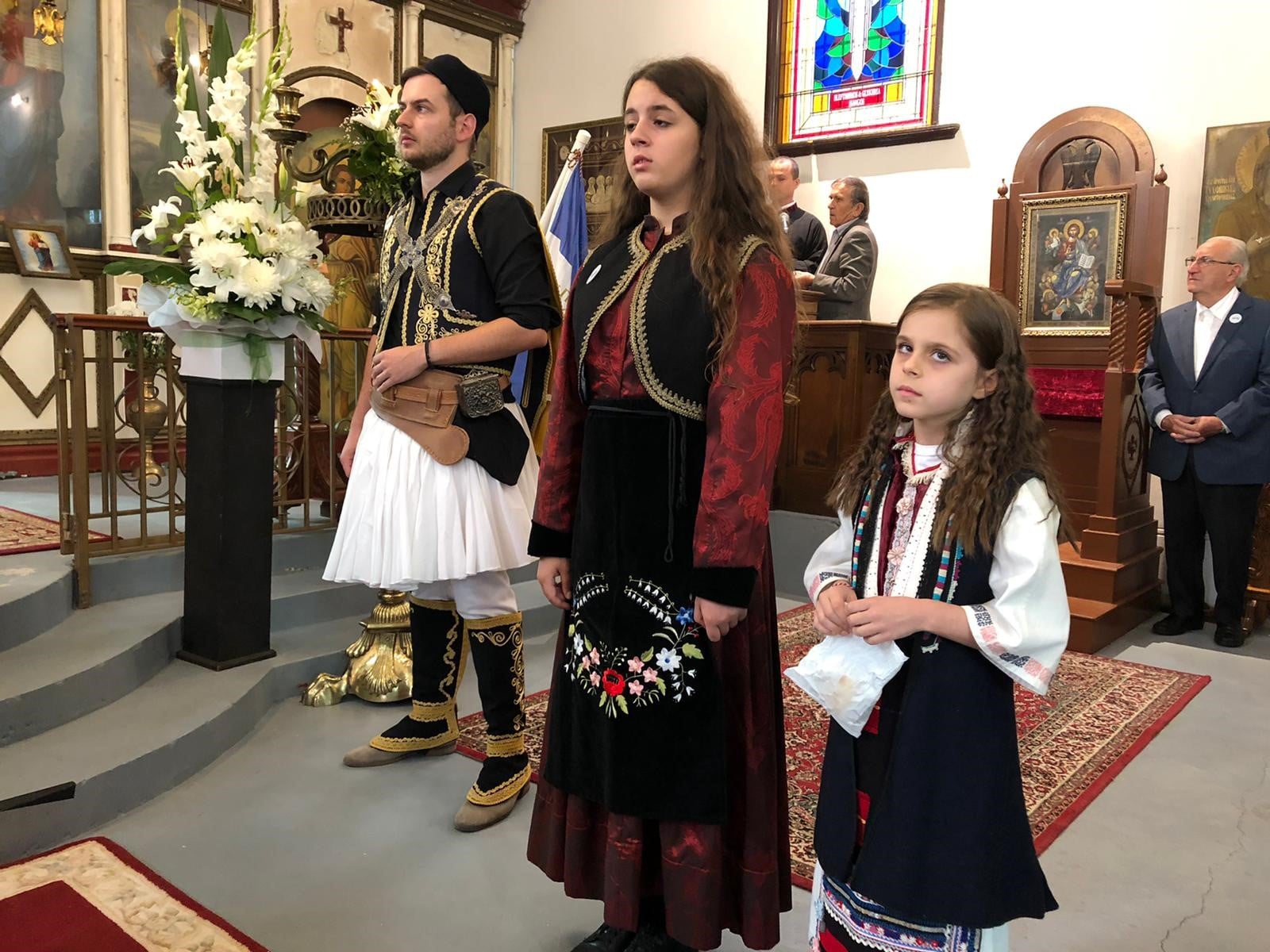 Μετά από την Κυριακάτικη Θεία Λειτουργία, τελέστηκε Δοξολογία επί τη εθνική εορτή από τον Αρχιεπισκοπικό Επίτροπο Νορθ-Κόουτ, Πανοσιολογιώτατο Αρχιμανδρίτη π. Ευμένιο Βασιλόπουλο, ο οποίος στη σύντομη ομιλία του αναφέρθηκε, ως αυστραλογεννημένος, στους Έλληνες μετανάστες που, σαν ήρωες κι εκείνοι, έφτασαν ως τους Αντίποδες, κατάφεραν να προκόψουν και διαφύλαξαν τα ιδανικά, τις παραδόσεις και την πίστη των προγόνων τους.