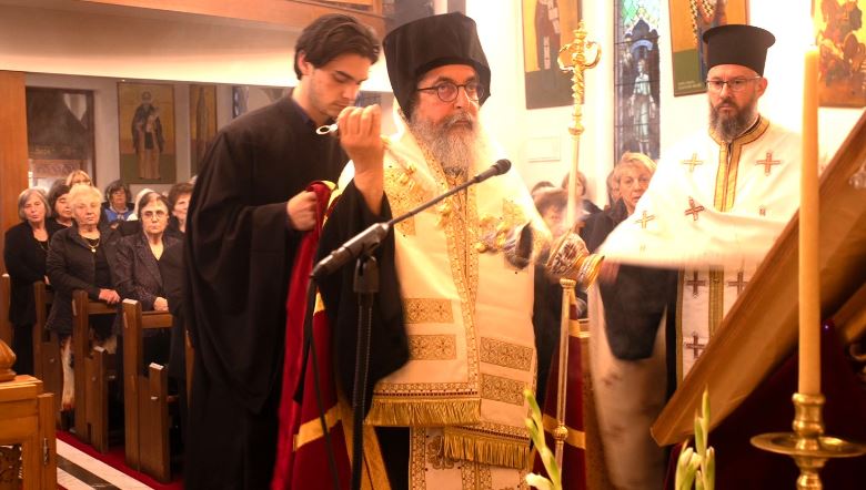 Ο Επίσκοπος Σωζοπόλεως κ. Κυριακός, Αρχιεπισκοπικός Επίτροπος Μελβούρνης, επισκέφθηκε χθες τον Ιερό Ναό των Αγίων Ραφαήλ, Νικολάου και Ειρήνης στο προάστιο Bentleigh και χοροστάτησε στην Ακολουθία των Χαιρετισμών προς την Υπεραγία Θεοτόκο.