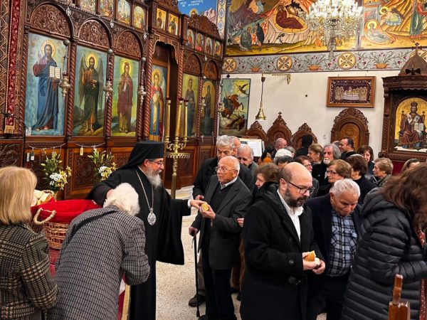 Στο τέλος της Ακολουθίας ο Θεοφιλέστατος Επίσκοπος κ. Κυριακός μετέφερε στους πιστούς τις ευχές, την ευλογία και την αγάπη του Ποιμενάρχου τους, Σεβασμιωτάτου Αρχιεπισκόπου Αυστραλίας κ. Μακαρίου.