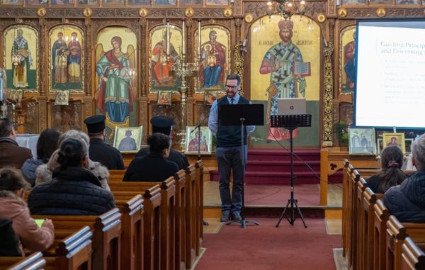 Με την ευλογία του Σεβασμιωτάτου Αρχιεπισκόπου Αυστραλίας κ. Μακαρίου και υπό την καθοδήγηση του Θεοφιλεστάτου Επισκόπου Σωζοπόλεως κ. Κυριάκου, η Ενορία Αγίας Αικατερίνης στο Malvern East της Μελβούρνης φιλοξένησε ομιλία του αποφοίτου της Θεολογικής Σχολής του Αποστόλου Ανδρέου, κ. Vasili Le Couillard, με θέμα: «Εξερεύνηση της Χριστιανικής Ταυτότητας»