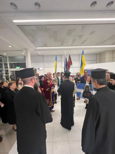 05/06/2022 05/06/2022 Μια ευχάριστη και συγκινητική έκπληξη επεφύλαξε ομάδα Ορθοδόξων Ουκρανών το Σάββατο το βράδυ στον Σεβασμιώτατο Αρχιεπίσκοπο Αυστραλίας κ.κ. Μακάριο, όταν αυτός επέστρεψε από τη Μελβούρνη, όπου είχε μεταβεί για τριήμερη επίσκεψη, προκειμένου να τελέσει τρεις χειροτονίες νέων κληρικών. Στο αεροδρόμιο Kingsford του Σύδνεϋ, Ουκρανοί πιστοί με προεξάρχοντες τον π. Σάββα Πιζάνια, Προϊστάμενο της ουκρανικής Ενορίας...