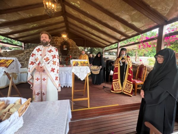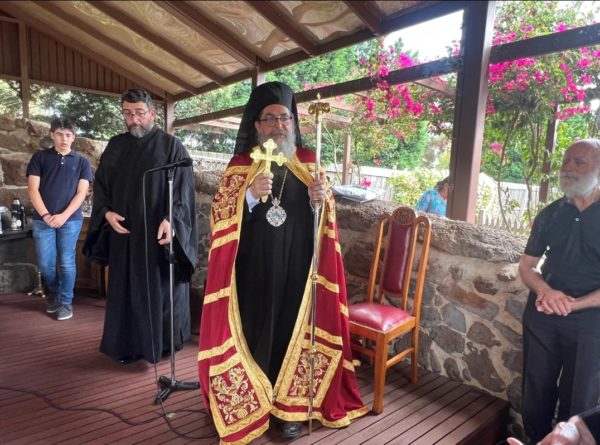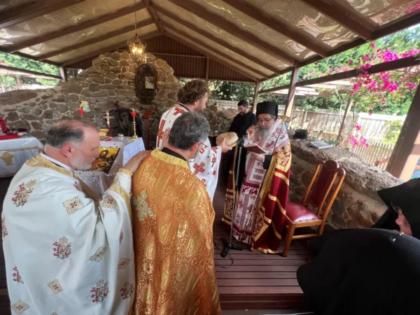 Ο Θεοφιλέστατος, ο οποίος συνοδευόταν από κληρικούς από τη Μελβούρνη, παρουσία αρκετών προσκυνητών, μίλησε για τον βίο του τιμώμενου Αγίου, μετέφερε σε όλους τις ευχές του Σεβασμιωτάτου Αρχιεπισκόπου κ.κ. Μακαρίου ενώ ευχαρίστησε για τη φιλοξενία τη Γερόντισσα της Ιεράς Μονής Καλλισθένη.