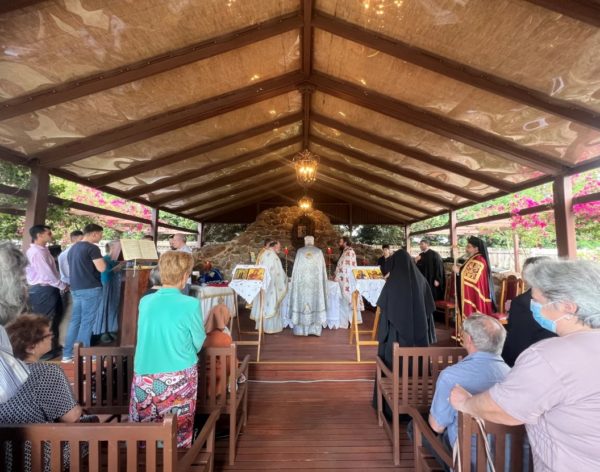 Με την ευλογία του Σεβασμιωτάτου Αρχιεπισκόπου Αυστραλίας κ.κ. Μακαρίου, ο Θεοφιλέστατος Επίσκοπος Σωζοπόλεως κ. Κυριακός επισκέφθηκε χθες, Δευτέρα, 2 Ιανουαρίου 2023, την Ιερά Μονή Παναγίας Γοργοεπηκόου στο Geelong της Βικτώριας και ιερούργησε επί τη εορτή του Οσίου Σεραφείμ του Σάρωφ στο υπαίθριο παρεκκλήσιο που είναι αφιερωμένο στη μνήμη του Οσίου.