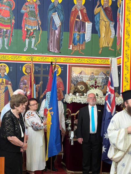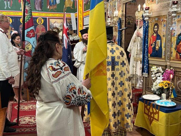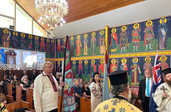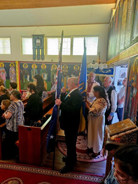 Του Ιερού Μνημοσύνου προέστη ο Θεοφιλέστατος Επίσκοπος Μιλητουπόλεως κ. Ιάκωβος, ο οποίος προηγουμένως χοροστάτησε στην Ακολουθία του Όρθρου και προεξήρχε της Θείας Λειτουργίας. Ο Θεοφιλέστατος εκπροσώπησε τον Σεβασμιώτατο Αρχιεπίσκοπο Αυστραλίας κ.κ. Μακάριο και μετέφερε στα μέλη της Ενορίας και στους παρισταμένους εκπροσώπους των Ουκρανών Ελεύθερων Κοζάκων της Αυστραλίας, εγκάρδιο μήνυμα υποστήριξης του Αρχιεπισκόπου, ο οποίος, μαζί με τον Παναγιώτατο Οικουμενικό Πατριάρχη κ.κ. Βαρθολομαίο, στηρίζουν αταλάντευτα και εμφατικά τον Ουκρανικό λαό απέναντι στις άδικες επιθέσεις που δέχεται.