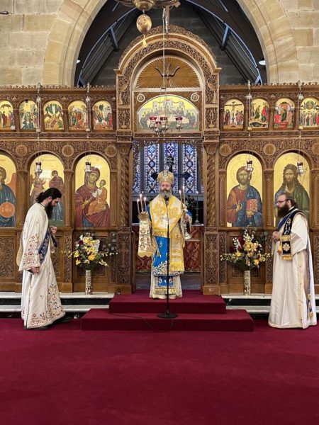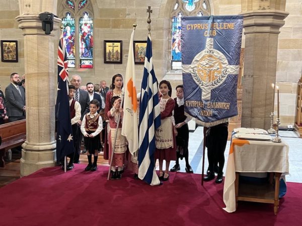 Της Θείας Λειτουργίας και του Μνημοσύνου προέστη ο Σεβασμιώτατος Αρχιεπίσκοπος Αυστραλίας κ. Μακάριος, ο οποίος, αναφερόμενος στα γεγονότα των ημερών εκείνων, επαναβεβαίωσε τη δέσμευση όλων για αποτροπή της λήθης. «Δεν ξεχνούμε, δεν παραιτούμαστε, αλλά συνεχίζουμε να διεκδικούμε τη μόνη δίκαιη λύση, δηλαδή την επανένωση της μεγαλονήσου», υπογράμμισε. Επισήμανε δε ότι η Ιερά Αρχιεπισκοπή Αυστραλίας υπηρετεί με αποφασιστικότητα το ιερό αυτό καθήκον, προβάλλοντας, με κάθε ευκαιρία και σε κάθε πρόσφορο βήμα, τα δίκαια του Κυπριακού λαού. Προσέθεσε δε ότι η τοπική Εκκλησία συμπορεύεται προς αυτή την κατεύθυνση με όλη την Ελληνική Ομογένεια της Αυστραλίας, συμπεριλαμβανομένων των δεκάδων χιλιάδων καταγόμενων από τη Μεγαλόνησο, καθώς και με την Εκκλησία της Κύπρου, με τον Μακαριώτατο Αρχιεπίσκοπο κ.κ. Γεώργιο και με την πολιτική ηγεσία της χώρας.