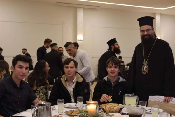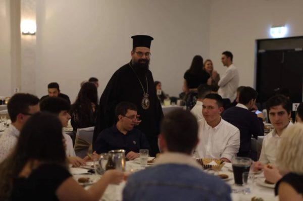 Ο Θεοφιλέστατος Επίσκοπος Κερασούντος κ. Ευμένιος, εκ μέρους του Σεβασμιωτάτου Αρχιεπισκόπου Αυστραλίας κ. Μακαρίου, παραβρέθηκε στην εκδήλωση και μετέφερε στους νέους τις πατρικές ευχές του Ποιμενάρχου τους.