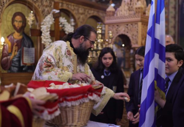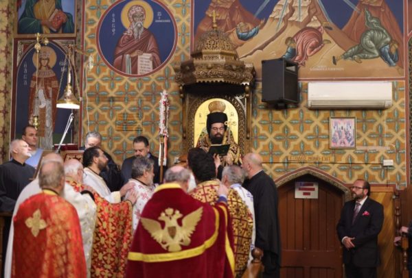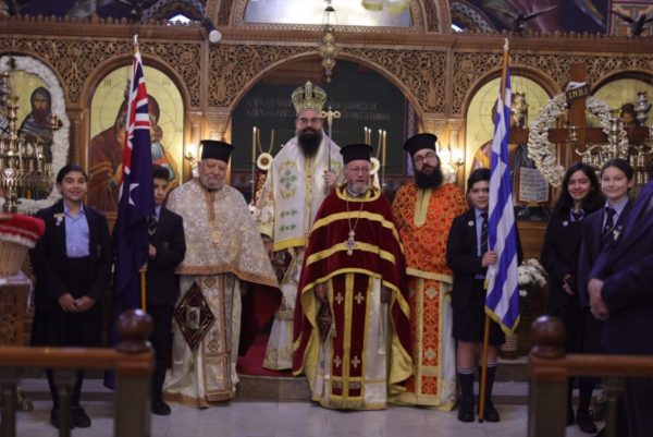 Τέλος, διαβίβασε τις ευχές του Σεβασμιωτάτου Αρχιεπισκόπου Αυστραλίας κ. Μακαρίου στην εορτάζουσα ενορία και ευχαρίστησε τον Ιερατικώς Προϊστάμενο αυτής, π. Βασίλη Κουρτέση, για την προσφορά του, καθώς και για τη φιλοξενία και την αγάπη του.