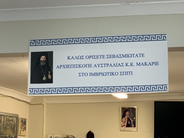 Προσκεκλημένος του Συλλόγου των Ιμβρίων του Σύδνεϋ ήταν ο Σεβασμιώτατος Αρχιεπίσκοπος Αυστραλίας κ. Μακάριος, ο οποίος τους επισκέφθηκε στο Ιμβριώτικο Σπίτι στο Revesby.