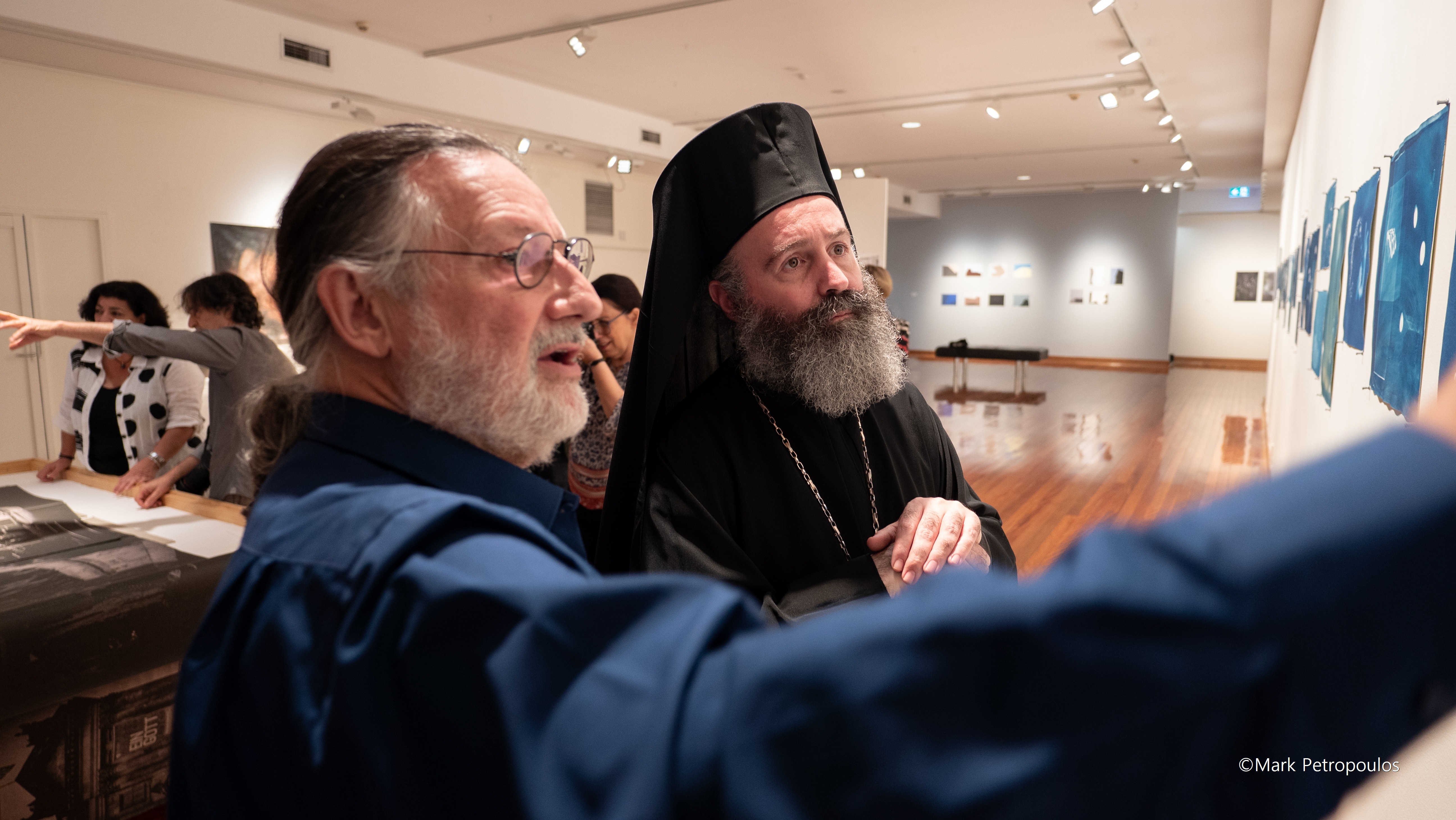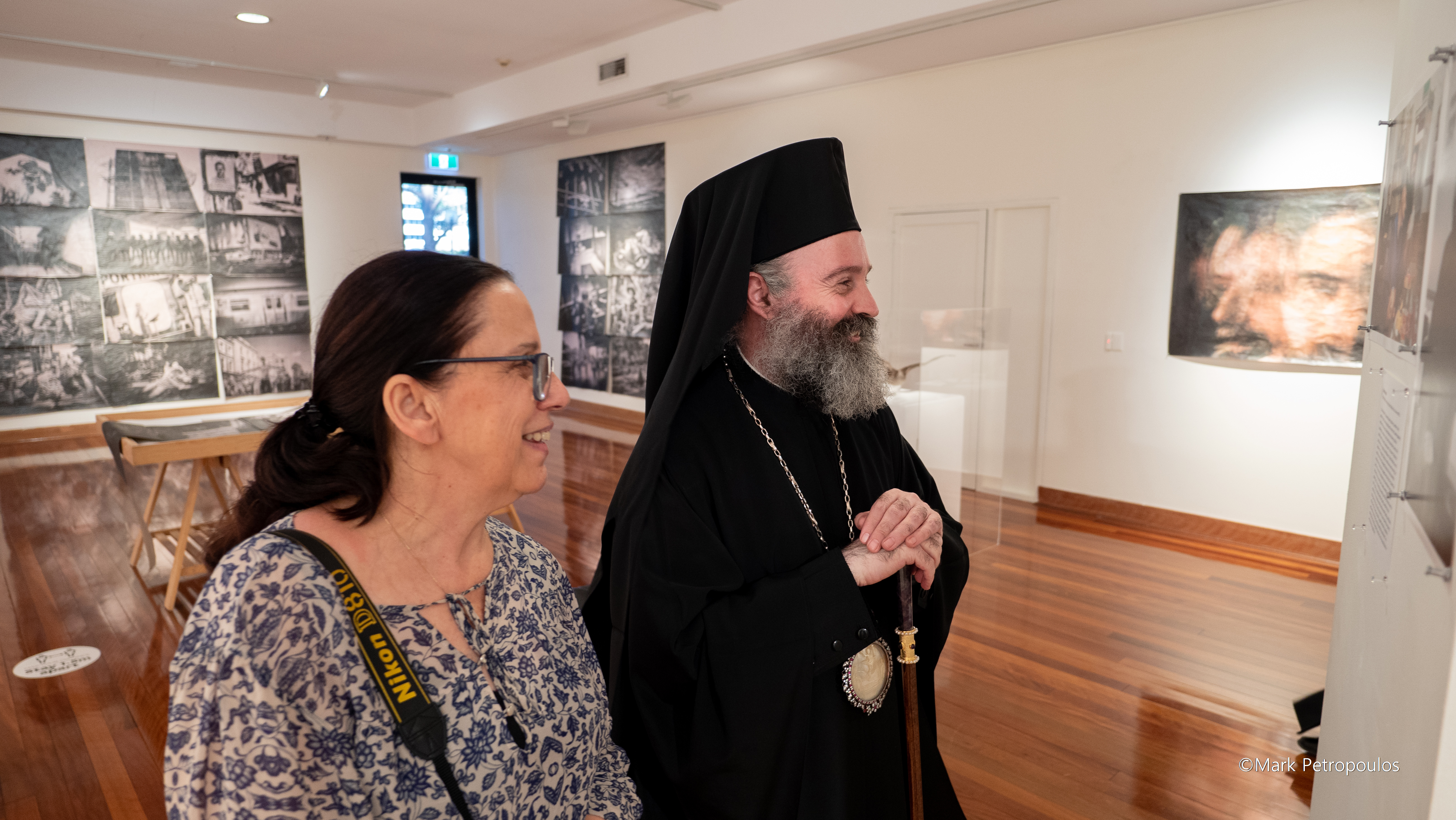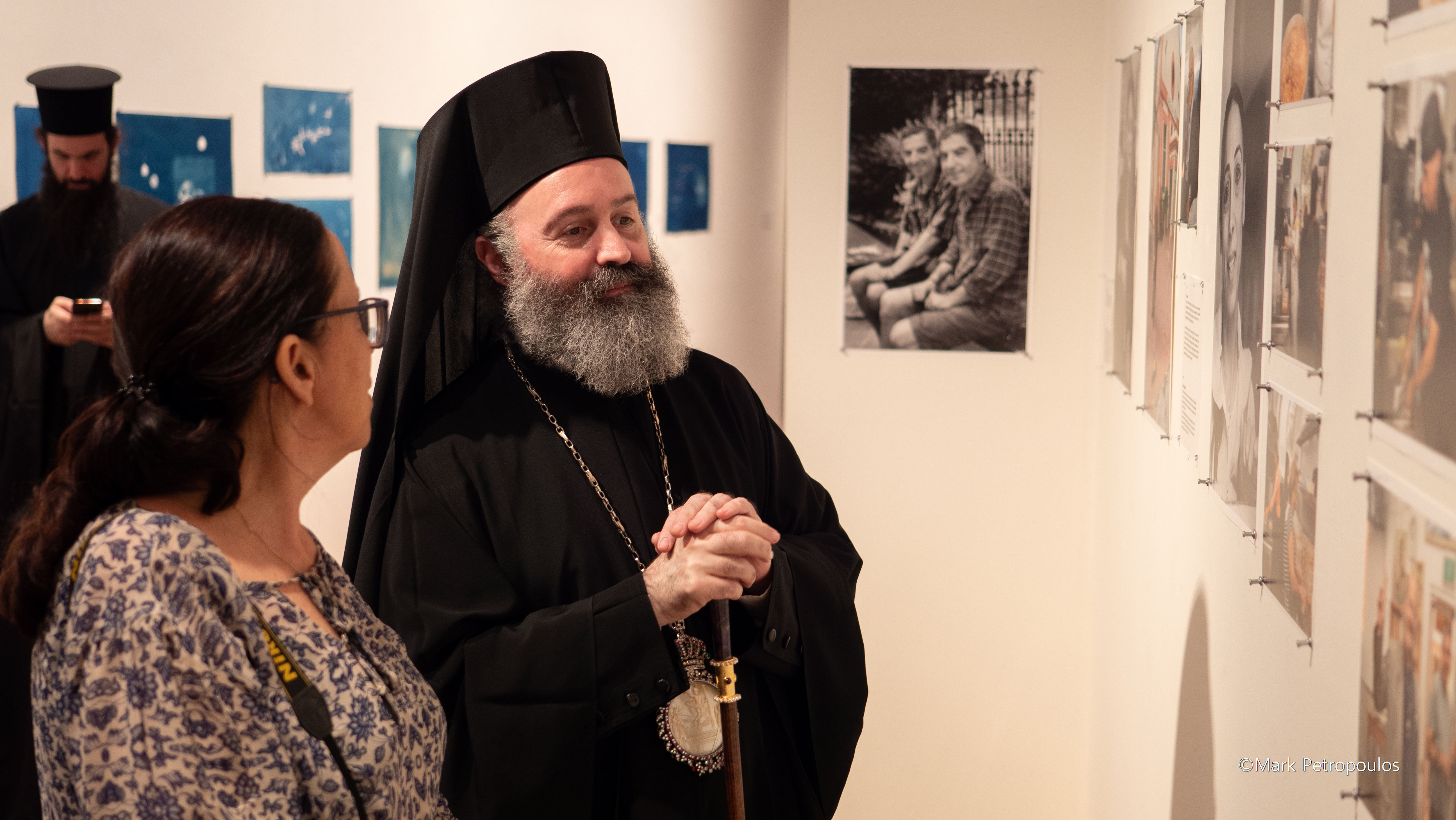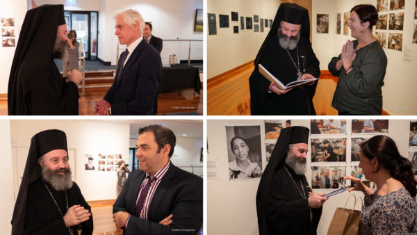 Από τους πρώτους που πέρασαν το κατώφλι της αίθουσας όπου φιλοξενείται η έκθεση, ήταν ο Σεβασμιώτατος Αρχιεπίσκοπος Αυστραλίας κ. Μακάριος. Τον υποδέχθηκαν ο Αντιπρύτανης του Πανεπιστημίου Macquarie, Καθηγητής κ. Sakkie Pretorius, ο Αναπληρωτής Καθηγητής κ. Πάνος Βλαχόπουλος, καθώς επίσης οι ομογενείς φωτογράφοι, έργα των οποίων κοσμούν την έκθεση, και οι επιμελητές αυτής, κα Rhonda Davis και κ. Leonard Janiszewski.