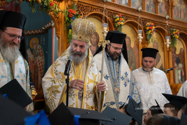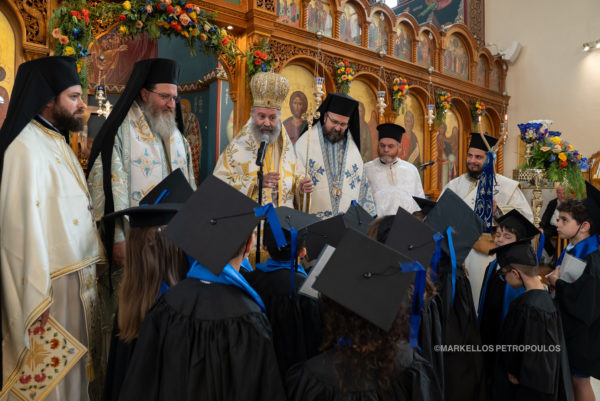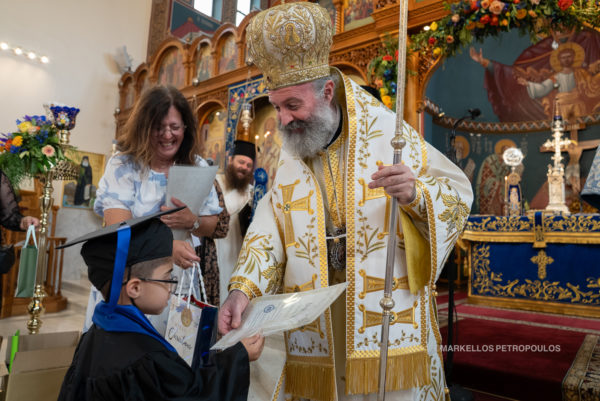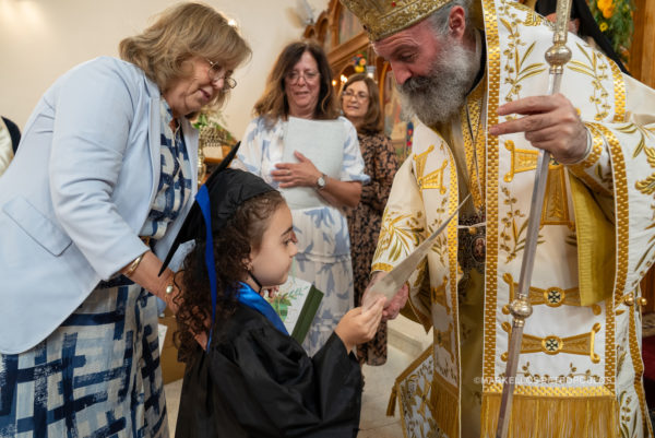 Κατά την εκδήλωση για την αποφοίτηση των παιδιών που θα μεταβούν στην επόμενη βαθμίδα της σχολικής εκπαιδεύσεως, ο Σεβασμιώτατος κ. Μακάριος απένειμε τα σχετικά διπλώματα, ενώ, μαζί με τις πατρικές ευχές και την ευλογία του, προσέφερε στα παιδιά και αναμνηστικά δώρα.