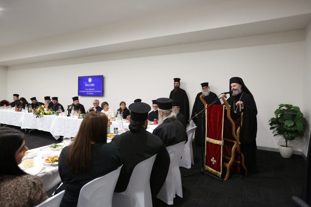 Το βράδυ της ίδιας ημέρας,στην αίθουσα της Ιεράς Μονής Αγίου Νεκταρίου, παρατέθηκε δείπνο προς τιμήν του Αρχιεπισκόπου, από την Κεντρική Φιλόπτωχο Αδελφότητα της Αρχιεπισκοπικής Περιφέρειας Αδελαΐδος. Στο δείπνο παρακάθησαν τα μέλη των εκκλησιαστικών συμβουλίων όλων των Ενοριών της Αρχιεπισκοπικής Περιφέρειας, τα οποία έλαβαν την ευχή και την ευλογία του Ποιμενάρχου τους, ενώ έγιναν αποδέκτες θερμών ευχαριστιών για την πολύτιμη προσφορά τους στην τοπική Εκκλησία.