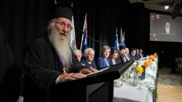 Ο λόγος για τους Πρωτοπρεσβύτερους π. Θεόκλητο Τσαχουρίδη και π. Γεώργιο Λίτα και τον Πρεσβύτερο π. Παναγιώτη Δημητράκο, στους οποίους απονεμήθηκε από τον Σεβασμιώτατο το παράσημο του Τάγματος των Φιλοχρίστων. Η απονομή του παρασήμου, που συνιστά την ανώτατη διάκριση της Ιεράς Αρχιεπισκοπής Αυστραλίας, πραγματοποιήθηκε την Κυριακή, 14 Ιουλίου, κατά τη διάρκεια του επίσημου εορταστικού γεύματος για τα εκατό χρόνια από τη θεμελίωση του Ιερού Ναού των Αγίων Κωνσταντίνου και Ελένης Πέρθης.