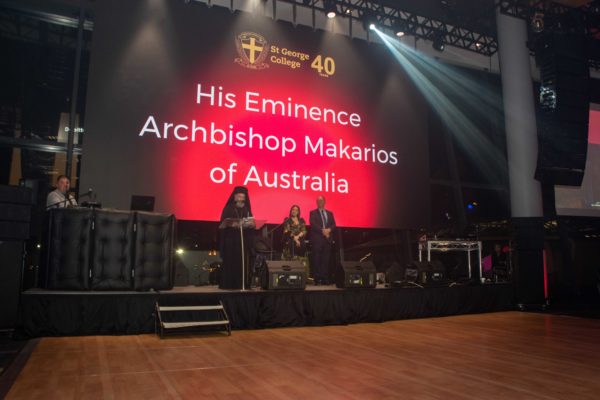 Εστιάζοντας έπειτα στο χαρμόσυνο γεγονός της συμπληρώσεως σαράντα ετών από την ίδρυση του πρώτου Ελληνορθοδόξου Κολλεγίου στη Νότιο Αυστραλία, ο Αρχιεπίσκοπος κατέθεσε τα αισθήματα θαυμασμού και υπερηφάνειας της τοπικής Εκκλησίας για το έργο που επιτελείται στον «Άγιο Γεώργιο»• τόσο για το ορθόδοξο ήθος που ενσταλάζει στα ελληνόπουλα, όσο και για την υψηλής ποιότητας εκπαίδευση που τους παρέχει. «Το Κολλέγιο όχι μόνο εξυπηρετεί τις ακαδημαϊκές ανάγκες των μαθητών, αλλά καλλιεργεί και την κοινωνική, συναισθηματική και πνευματική τους ευημερία», σημείωσε μεταξύ άλλων.
