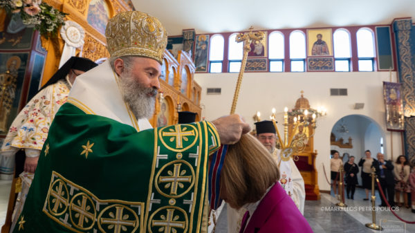 Στο τέλος της Θείας Λειτουργίας, ο Αρχιεπίσκοπος κ. Μακάριος τίμησε την κ. Ελένη Ράπτη με το Παράσημο του Τάγματος των Φιλοχρίστων, σε αναγνώριση της πολυετούς, θυσιαστικής προσφοράς της στην Ενορία Αγίας Άννης Gold Coast.