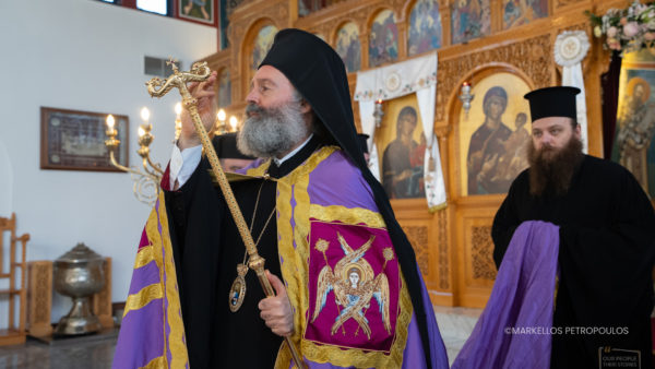 Ο Σεβασμιώτατος προεξήρχε της Θείας Λειτουργίας, πλαισιούμενος από τους Θεοφιλεστάτους Επισκόπους Βρισβάνης κ. Βαρθολομαίο και Μιλητουπόλεως κ. Ιάκωβο. Εκκλησιάστηκαν, μεταξύ άλλων, ο κ. Τσαμπίκος Αθανασάς, εκπρόσωπος του Επίτιμου Πρόξενου της Ελλάδος στη Βρισβάνη, κ. Γεωργίου Μαστροκώστα, ο πρώην Επίτιμος Πρόξενος και πρώην Πρόεδρος της Ενορίας κ. Δημήτριος Ράπτης, και ο Άρχων της Μ.τ.Χ.Ε. και Πρόεδρος της Ενορίας – Κοινότητας Αγίου Ιωάννου του Βαπτιστού Cairns, κ. Θεόδωρος Μπακαλάκης.