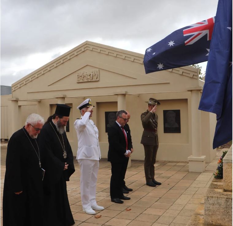 Ο Επίσκοπος Κυανέων κ. Ελπίδιος ανέγνωσε το Μήνυμα του Σεβασμιωτάτου Αρχιεπισκόπου Αυστραλίας κ. Μακαρίου για την Ημέρα των ANZACs, όπου μεταξύ άλλων ο Σεβασμιώτατος τόνιζε: «Με απόλυτη επίγνωση της ιστορικής ευθύνης μας, κλίνουμε το γόνυ ευλαβικά σήμερα προ των ενδόξων ηρώων του Αυστραλιανού Έθνους. Το παράδειγμά τους θα μας συγκινεί πάντοτε, θα μας εμπνέει και θα μας καθοδηγεί. Δεν θα τους λησμονήσουμε ποτέ!».