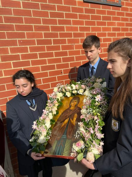 Στο τέλος της Θείας Λειτουργίας, πραγματοποιήθηκε λιτάνευση της εικόνας της Αγίας πέριξ του Ιερού Ναού, ενώ ακολούθησε εορταστικό γεύμα που παρέθεσε η Ενορία για όλους εκκλησιασθέντες.