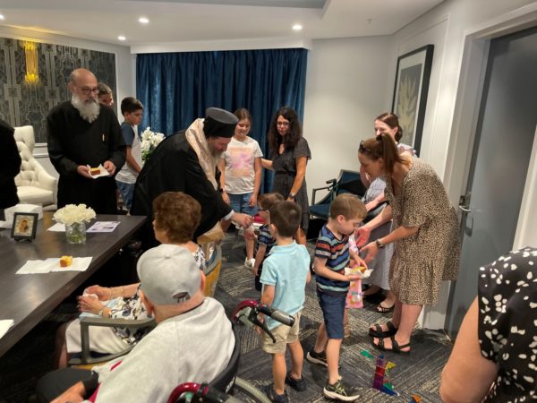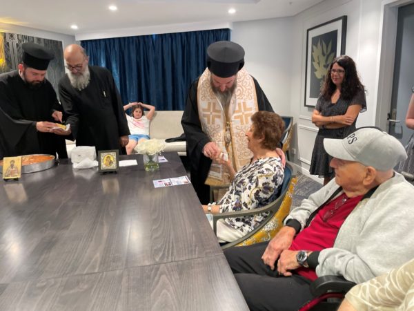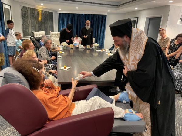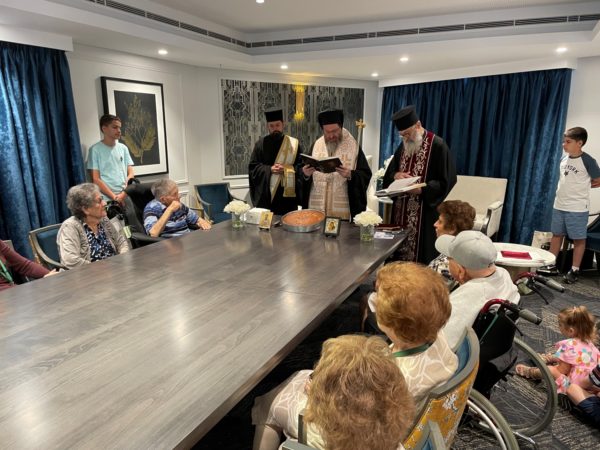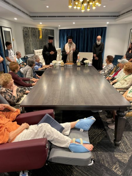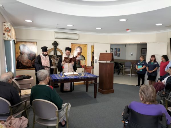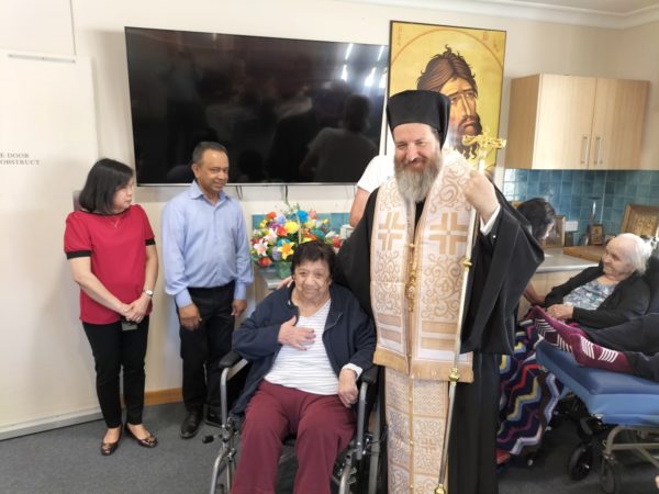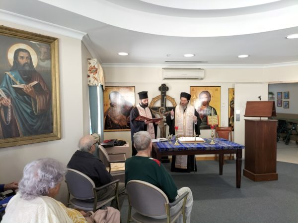 Η πρώτη μονάδα που επισκέφθηκε ο Θεοφιλέστατος ήταν το Rosewood Aged Care, που βρίσκεται κοντά στην εκκλησία του Ευαγγελισμού της Θεοτόκου στη δυτική Πέρθη. Ο Ιερατικώς Προϊστάμενος του Ευαγγελισμού, Πρωτοπρεσβύτερος του Οικουμενικού Θρόνου π. Εμμανουήλ Σταματίου, και ο Διάκονος Νικόλαος Κακούλας συνόδευσαν τον Επίσκοπο Κυανέων και τον βοήθησαν κατά την τελετή.