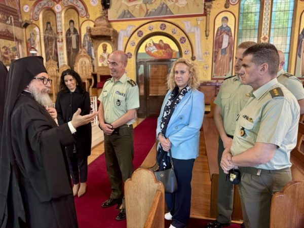 Από την πλευρά του, ο Διοικητής της Σχολής Ευελπίδων κ. Πολύχρονος προσέφερε στον Θεοφιλέστατο ένα αναμνηστικό δώρο, ως σύμβολο εκτιμήσεως, και εξέφρασε την ευγνωμοσύνη του για τη θερμή φιλοξενία του Επισκόπου: «Θεοφιλέστατε, σας ευχαριστούμε θερμά για την αγάπη και τη ζεστασιά με την οποία μας υποδεχθήκατε. Όπου οι Έλληνες συγκεντρώνονται με πίστη και ενότητα, η καρδιά της Πατρίδας μας χτυπά δυνατά. Οι ευλογίες σας μας ενισχύουν στην αποστολή μας και μας υπενθυμίζουν τις πνευματικές ρίζες που στηρίζουν τις Ελληνικές Ένοπλες Δυνάμεις».