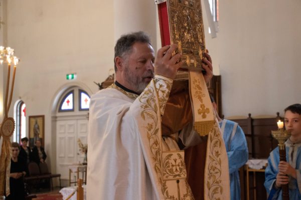 Στο τέλος της Θείας Λειτουργίας, ο π. Δημήτριος εξέφρασε ευγνώμονες ευχαριστίες στον Επίσκοπο Μελβούρνης για την παρουσία του στην Ενορία Κοιμήσεως της Θεοτόκου.
