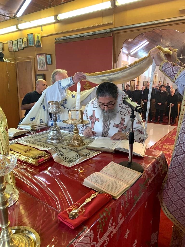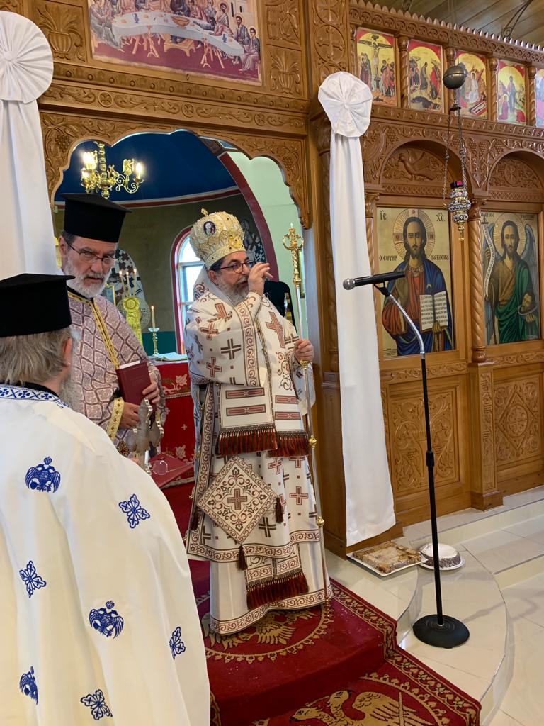 Ο Θεοφιλέστατος χοροστάτησε στην Ακολουθία του Όρθρου και προεξήρχε της Θείας Λειτουργίας, ενώ στο τέλος μίλησε στα μέλη της ελληνορθόδοξης κοινότητας και τους μετέφερε την αγάπη και τις ευχές του Ποιμενάρχου τους, Σεβασμιωτάτου Αρχιεπισκόπου Αυστραλίας κ.κ. Μακαρίου.