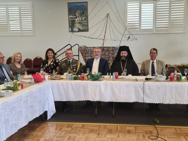 Ακολούθως, παρατέθηκε γεύμα στην παρακείμενη της Εκκλησίας αίθουσα, όπου παρακάθισαν ο Πρέσβης της Ελλάδος στην Καμπέρα, κ. Γεώργιος Παπακώστας, ο αναπληρωτής επικεφαλής της διπλωματικής αποστολής της Ελλάδος, κ. Θεόδωρος Μιχαλόπουλος, και άλλοι εκλεκτοί προσκεκλημένοι.