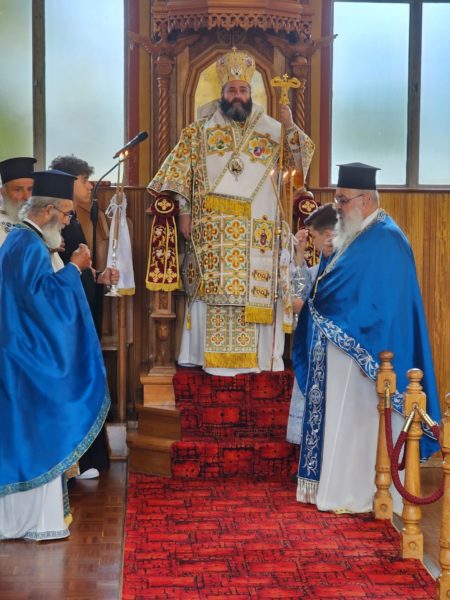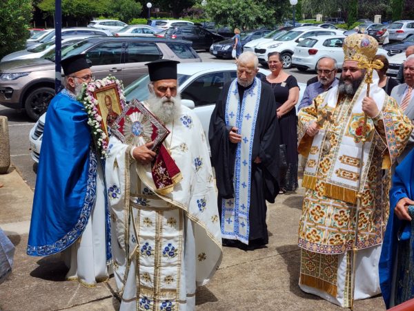 Το απόγευμα της Δευτέρας, παραμονή της εορτής, ο Θεοφιλέστατος χοροστάτησε στον Πανηγυρικό Εσπερινό και την Τρίτη, κυριώνυμο ημέρα, χοροστάτησε στον Όρθρο και προεξήρχε της Πανηγυρικής Θείας Λειτουργίας, βοηθούμενος από τον Ιερατικώς Προϊστάμενο του Ιερού Ναού, π. Πέτρο Κηπουρό, τον εφημέριο του Ι.Ν. Αγίου Δημητρίου Queanbeyan π. Ιάκωβο Συριώτη και τον εφημέριο του Ι.Ν. Αγίου Παντελεήμονος Goulburn π. Κυριάκο Θεολόγου.