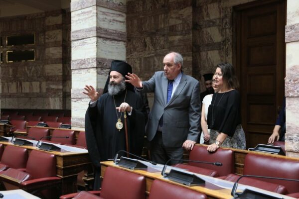 Ο Πρόεδρος της Βουλής των Ελλήνων, κ. Νικόλαος Βούτσης, υποδέχθηκε σήμερα στο κοινοβούλιο τον νέο Αρχιεπίσκοπο Αυστραλίας Μακάριο.