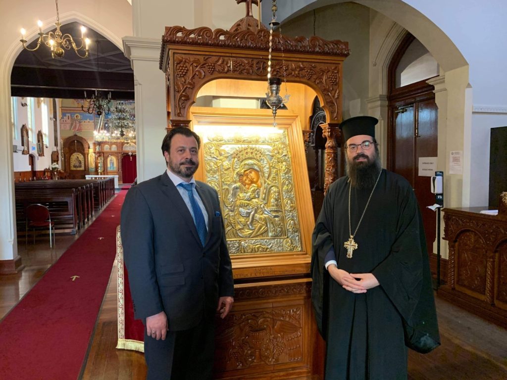 Ο π. Ευμένιος, εκ μέρους του Σεβασμιωτάτου Αρχιεπισκόπου Αυστραλίας κ.κ Μακαρίου, καλωσόρισε τον Γενικό πρόξενο στην Βικτώρια και του ευχήθηκε καλή και ευλογημένη διακονία.