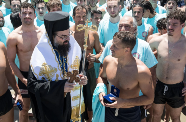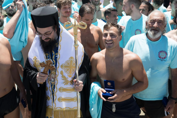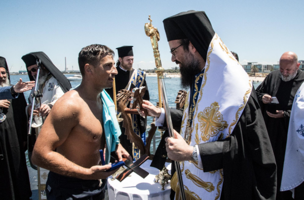 Πρώτος ανάμεσα σε δεκάδες κολυμβητές, έπιασε και ανέσυρε τον Τίμιο Σταυρό από τη θάλασσα ο νεαρός Στέλιος Κικίρης.