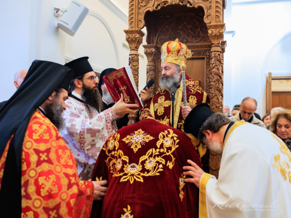Κατά τη διάρκεια της Θείας Λειτουργίας, την κυριώνυμο ημέρα της εορτής, ο Σεβασμιώτατος τέλεσε τη χειροθεσία, σε Πνευματικό – Εξομολόγο, του π. Ελευθερίου Γεροβασίλη, Ιερατικώς Προϊσταμένου του Ιερού Ναού Αγίων Κωνσταντίνου και Ελένης Πέρθης. Επίσης, χειροθέτησε σε Αναγνώστες του κυρίους JoshuaSmith και Ιωάννη Τσιγκιόζογλου.