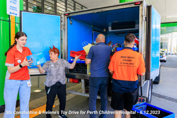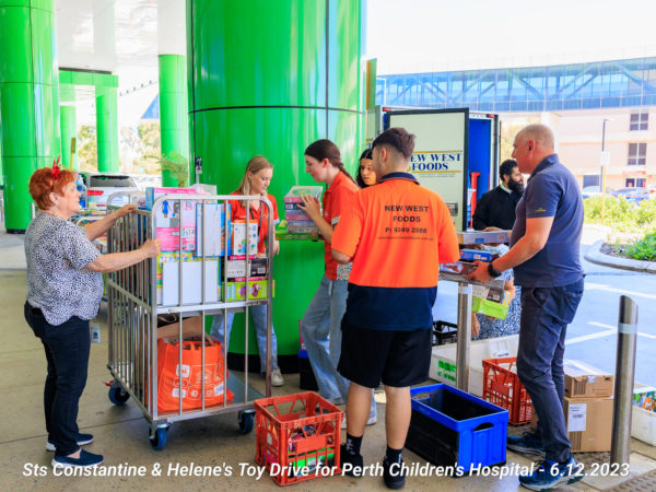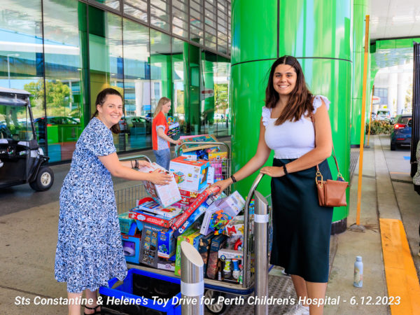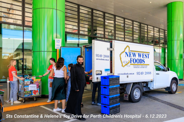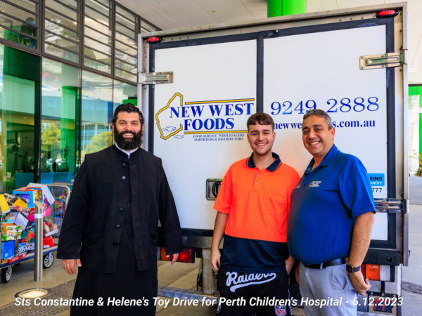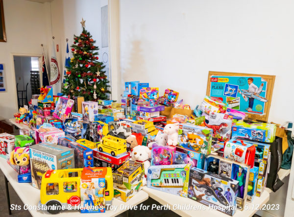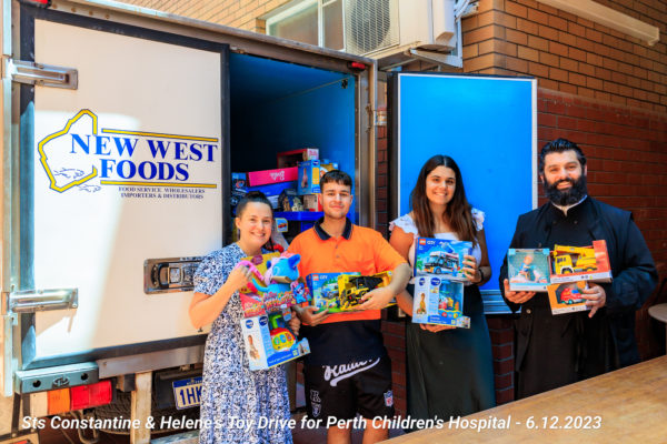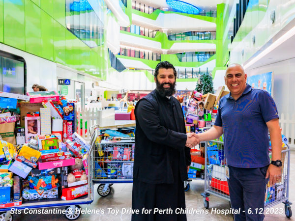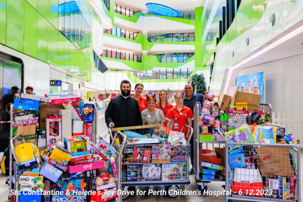 Με την ευλογία του Σεβασμιωτάτου Αρχιεπισκόπου Αυστραλίας κ. Μακαρίου, η Ενορία Αγίων Κωνσταντίνου και Ελένης στην Πέρθη υλοποίησε την ετήσια Χριστουγεννιάτικη δράση «Christmas Toy Drive» που έχει σκοπό τη συγκέντρωση παιδικών παιχνιδιών και τη δωρεά τους στο Νοσοκομείο Παίδων της πρωτεύουσας της Δυτικής Αυστραλίας.