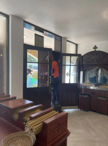 – Πραγματοποιήθηκε πολύ λεπτομερής καθαρισμός σε ολόκληρο τον ναό, συμπεριλαμβανομένου του καθαρισμού των εικόνων, όπως η Πλατυτέρα στον ανατολικό πλευρικό τοίχο, ψηλά πάνω από το Ιερό, και οι εικόνες στο τέμπλο. Επαγγελματική ομάδα καθαρισμού, αποτελούμενη από πέντε άτομα, προσέφερε τις υπηρεσίες της δωρεάν. «Ένα μεγάλο ευχαριστώ στον Βασίλη και την Ιωάννα και στη δυναμική ομάδα τους για τις εξαιρετικές τους υπηρεσίες καθαρισμού», απευθύνει η Αρχιεπισκοπική Περιφέρεια Πέρθης.