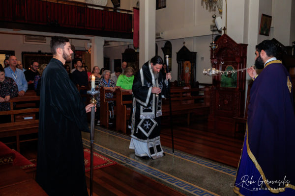 Με την ευλογία του Σεβασμιωτάτου Αρχιεπισκόπου Αυστραλίας κ. Μακαρίου, ο Θεοφιλέστατος Επίσκοπος Κυανέων κ. Ελπίδιος προεξήρχε της Λειτουργίας των Προηγιασμένων Δώρων, την Την Τετάρτη 3 Απριλίου, στον Ιερό Ναό των Αγίων Κωνσταντίνου και Ελένης Πέρθης.