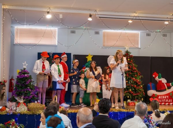 Οι παρευρισκόμενοι διασκέδασαν παρακολουθώντας χριστουγεννιάτικη παράσταση, την οποία παρουσίασαν οι μαθητές και οι μαθήτριες του Κατηχητικού Σχολείου. Τα παιδιά αφηγήθηκαν βιβλική ιστορία της Γεννήσεως του Χριστού και παρουσίασαν τραγούδια στα ελληνικά και στα αγγλικά. Στο τέλος της παράστασής τους, ο Ιερατικώς Προϊστάμενος της Ενορίας, π. Ελευθέριος Γεροβασίλης, συνεχάρη όλα τα παιδιά για την υπέροχη παρουσία τους,, καθώς και για την τακτική φοίτησή τους στο Κατηχητικό Σχολείο καθ’ όλη τη διάρκεια της χρονιάς. Ο π. Ελευθέριος συνεχάρη επίσης τους δασκάλους του Κατηχητικού Σχολείου που συντόνισαν τα παιδιά για μια τόσο υπέροχη παράσταση.